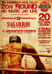 O Jarbanzo Negro disolvérase hai tres anos, pero daquela non puideran facer a despedida que agora ofrecerán no concerto deste sábado, acompañados de amigos e músicos cos que colaboraran na súa traxectoria. Os jarbanzos porán o fin de festa a unha noite na que comparten cartel con Ràbia Positiva e con Sagarroi. A formación catalá axiña presentará un CD+DVD cun concerto en directo e información a súa traxectoria; o grupo liderado por Iñigo Muguruza presentará en Barcelona a nova formación e o seu carto traballo, Baleike.