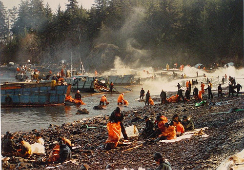 Limpando o vertido do Exxon Valdez, en 1989 / Flickr: jimbrickett