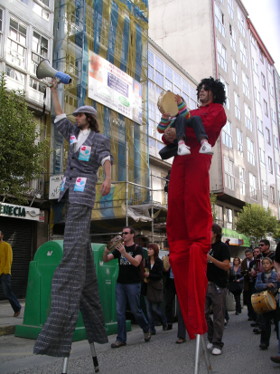 A manifestación partiu pasadas as 12.15 horas desde a Alameda e contra as 13.30 aínda había xente que non comezará a andar. A actriz Isabel Risco, que se encargou de manter o ánimo festeiro na Quintana, ironizou coa posibilidade de "ir tirando tabiques" para coller todos. "Se se pode tirar a lingua, porque non imos tirar tamén os muros da Quintana. Sóbranos patrimonio", dixo con sorna.