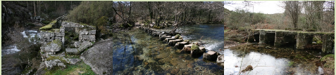 No río atopamos tamén pontes, pontillóns e pasos. Pontes de coidada fábrica que deron nome a unha vila como Ponte Caldelas; fermosas e sólidas como a ponte de Berducido na Lama; de enorme encanto como a Ponte da Laxe, en Fornelos; lugares de trasfega para os arrieiros que percorrían o Camiño Real entre Pontevedra e Ribadavia. Ás veces as corredoiras entre parroquias veciñas salvan os regatos a través dos pontillóns, outras veces, cando o río é ancho , pero a corrente e a profundidade do río leve, aparecen os pasos, unha obra de enorme beleza pola simplicidade da súa execución.